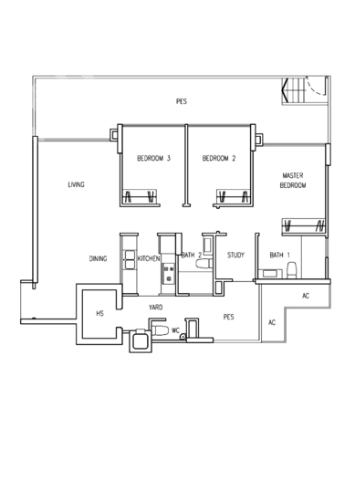 - 3 Study Unit, 1,206sqft indoor space, PES only extra 193sqft.