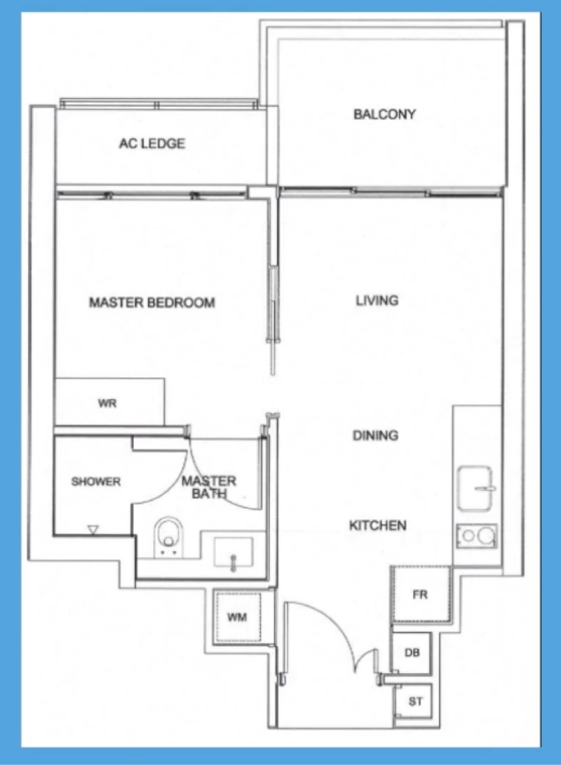 Spanning 474 sqft, this unit at 28, Alexandra View, Singapore offers modern kitchen furnishings, a fridge, and an air conditioner for your comfort.