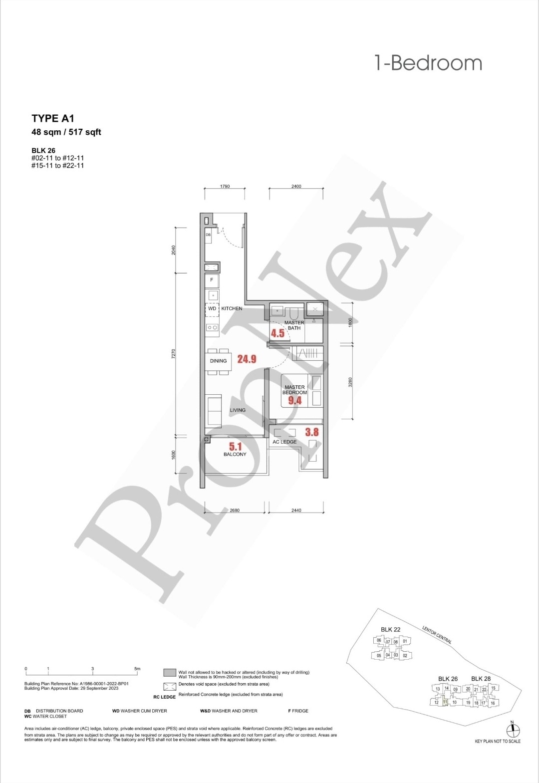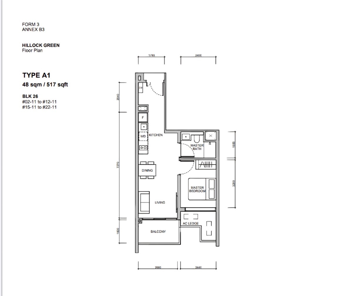 517 sqft $2,505 psf