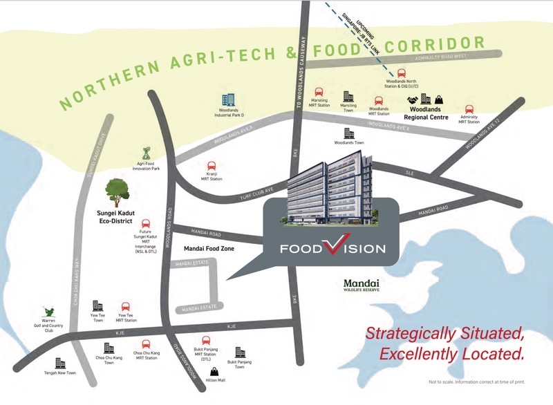 Food Vision is close to Sungei Kadut Eco-District, a part of the fast developing Northern Agri-Tech and Food Corridor. More food-related companies will locate there in due time.