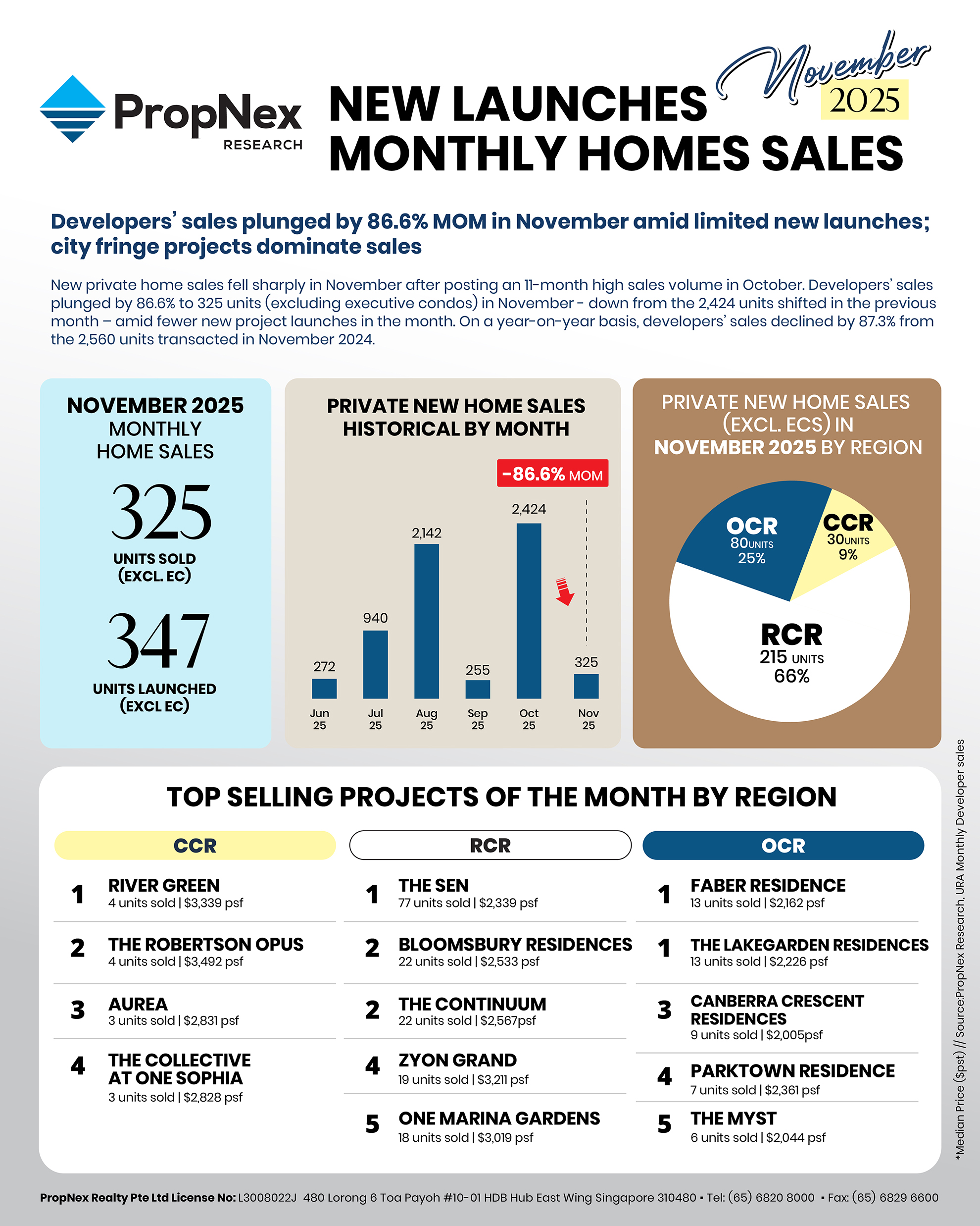 Developers' Sales Plunged By 87% MOM In November Amid Limited New Launches; City Fringe Projects Dominate Sales