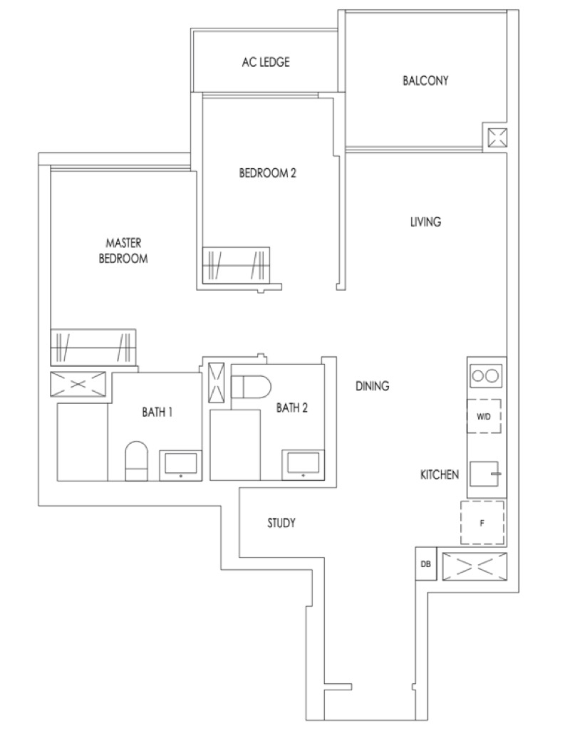 2 Bedroom with Enclosed Study