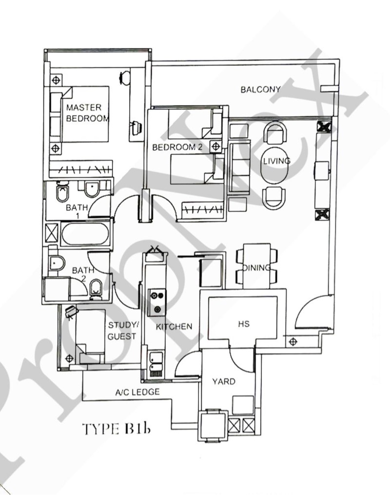 This elevated balcony, 1109sf 2 Study has a squarish, highly efficient, functional layout, making it ideal for both families and savvy investors.