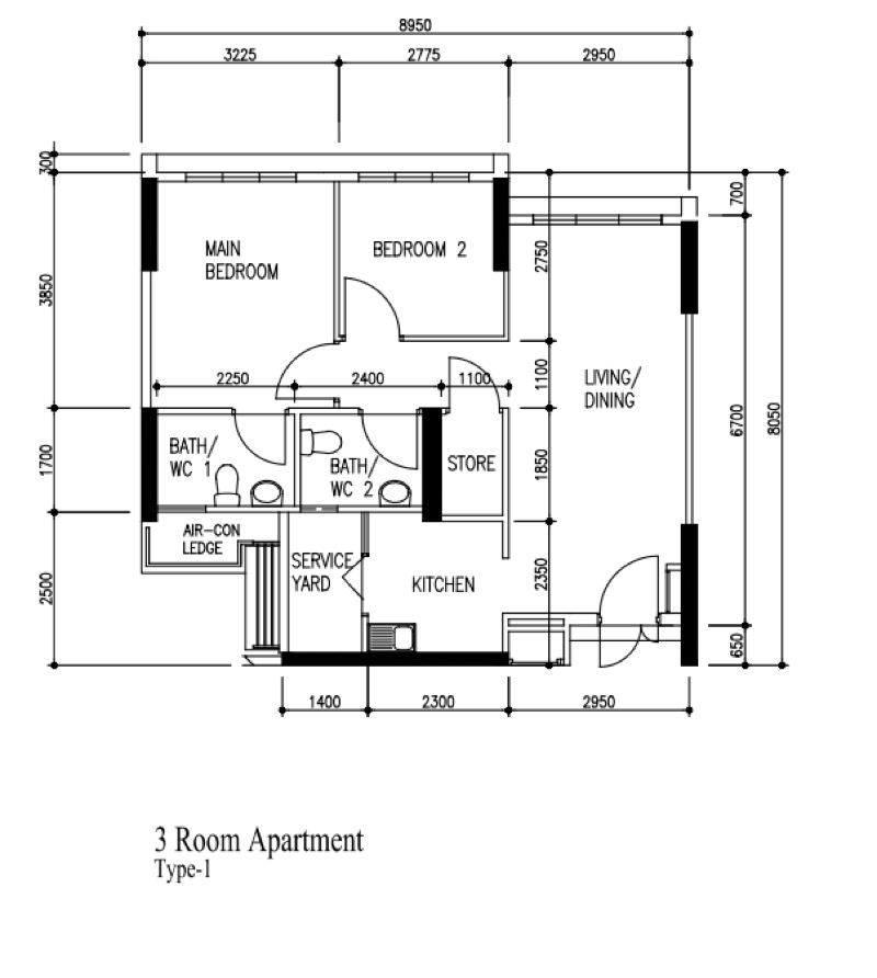 Type: HDB 3 room flat