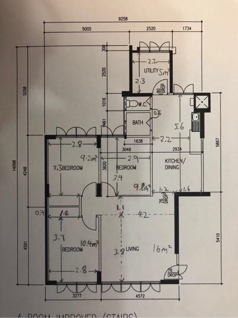3 bedrooms plus utility room;