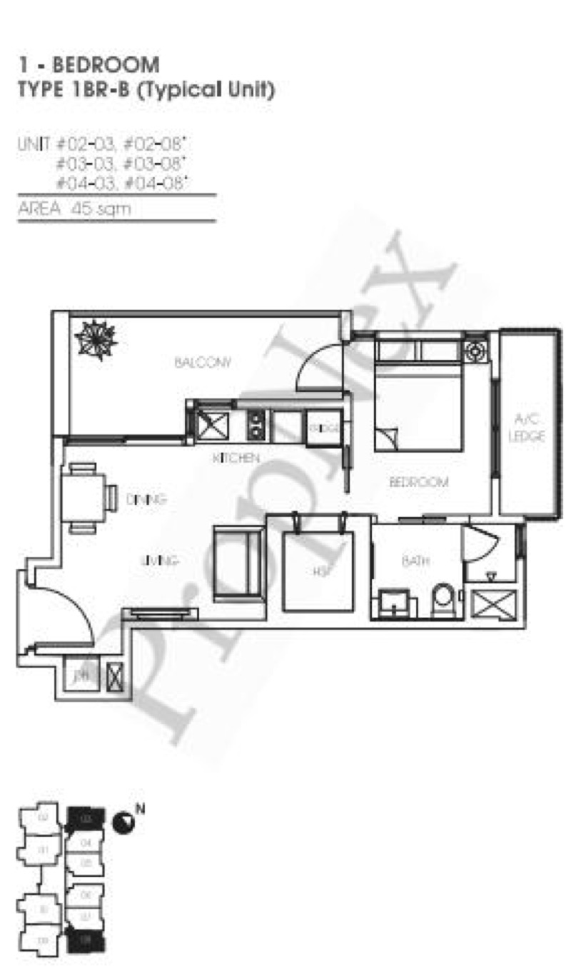 Unit size: 484 sqft / 45 sqm