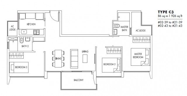 - Very rare 3 bedroom dumb bell layout. Only 2 stacks in the whole development.
