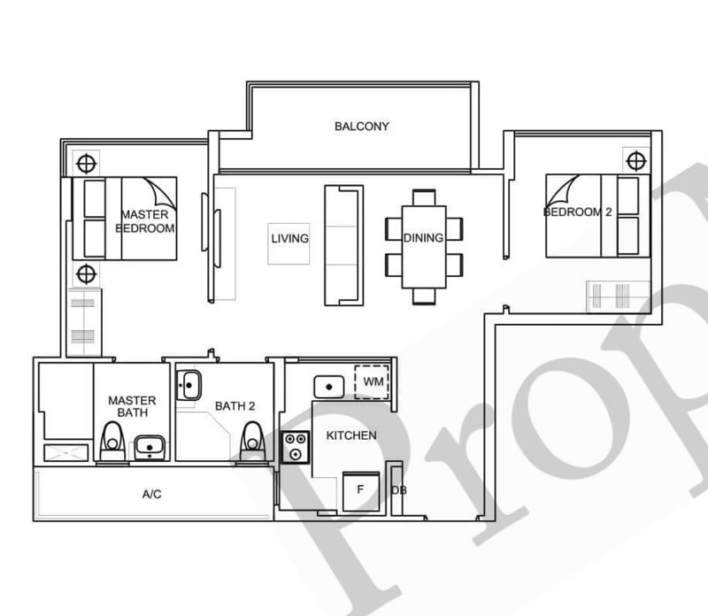 The unit is the biggest 2 bed 2 bath in the vicinity, with Horizontal Living hall, which allows more sun light and better ventilation.