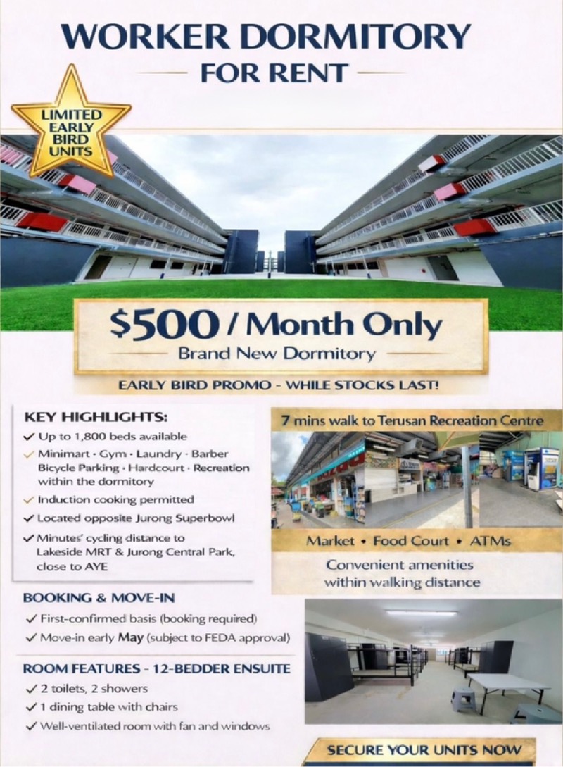 ✅Each Ensuite in Dormitory can stay up to 12 workers all inclusive nett $6360