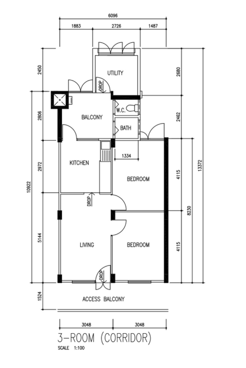 This 3-room Improved unit comes with a spacious living area, separate kitchen and a rare utility room — offering great flexibility for storage or multi-use.