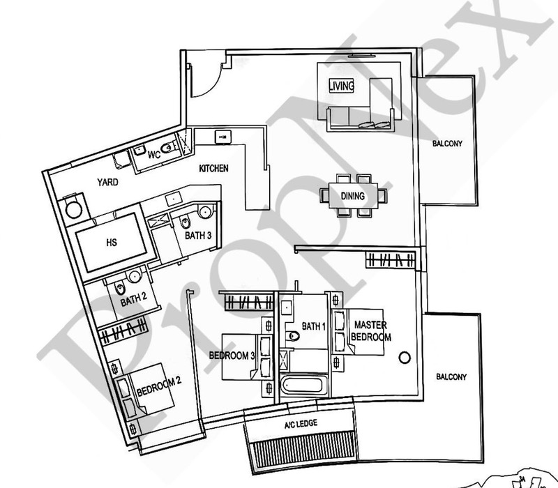 This 3-bedroom, 4-bathroom condominium features a squarish, efficiently planned living space, including two balconies that maximize natural light and scenic views. The property boasts a southeast-facing orientation, ensuring a bright, sunlit environment without the harsh afternoon heat. Additionally, it comes with a yard and helpers' room, offering practicality and comfort for modern living.